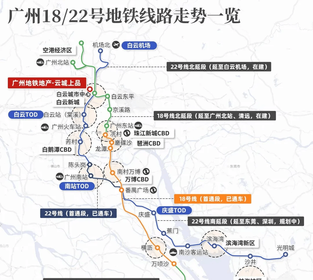 。项目周边 3 公里范围内,已落地中航油南方总部、广州地铁设计院等总部项目,粤海云港城等商业综合体加快建设,未来将形成集总部办公、商业消费、文化娱乐于一体的成熟商圈。同时,区域城市更新进程加速,三元里、萧岗、夏茅等片区改造稳步推进,2025 年获批国家政策性银行专项借款授信 1637 亿元,完成支付金额占全市 61%,区域面貌将持续优化广州市白云区人民政府。了解更多区域规划详情,可拨打地铁云城上品官方售楼处 24 小时电话 (开发商直连,官方验证。解答项目规划、购房政策等问题)获取最新规划文件。2. 交通配套:双高速地铁上盖,30 分钟直达全城核心