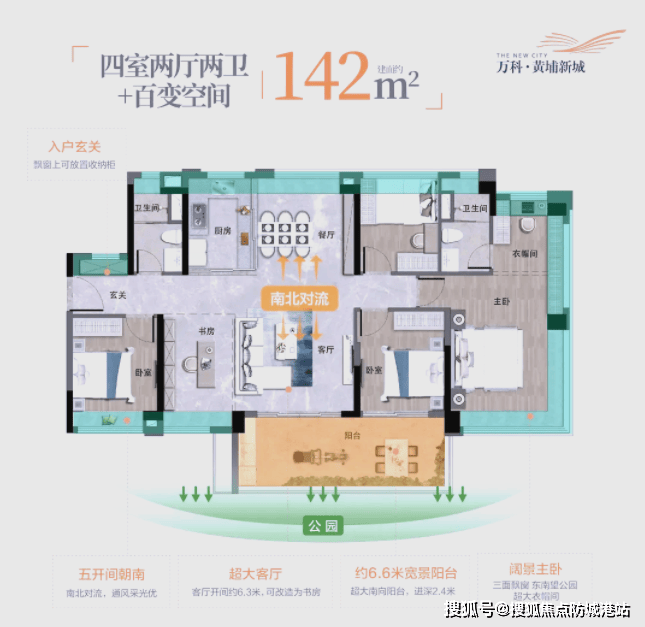 如果您对居住品质有更高的要求,那么142平方米的四房户型绝对不会让您失望。这款户型在空间尺度上进行了全面升级,拥有约7米的超长景观阳台,站在阳台上,社区的园林美景尽收眼底,仿佛置身于一幅流动的画卷中。主卧套房设计更加豪华,配备了独立的衣帽间和卫浴,让您在忙碌一天后,能够尽情享受放松的时光。客厅开间阔绰,足以容纳大型沙发和家庭影院设备,满足家庭聚会和娱乐需求。每一个房间都经过精心打磨,细节之处尽显匠心。住在这里,不仅仅是居住,更是一种生活态度的彰显。
