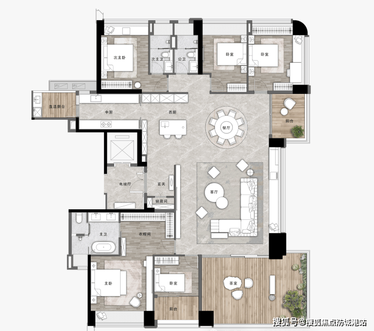 对于多孩家庭或三代同堂的大家庭来说,125平方米的四房双主卧户型是完美的解决方案。该户型采用了LDKG(客餐厨阳)一体化设计,打破了传统墙体的界限,让公共活动区域更加开阔通透,便于家人之间的互动交流。双主卧套房配置是其最大亮点,两个卧室均带有独立卫生间,充分保障了主人的私密性和尊贵感。无论是父母同住,还是两个孩子各自拥有独立空间,都能得到很好的满足。此外,户型还预留了充足的收纳空间,玄关柜、衣柜、储物间等一应俱全,让家居物品井井有条。总价380万起的定价,与其提供的超大空间和舒适体验相比,物超所值。